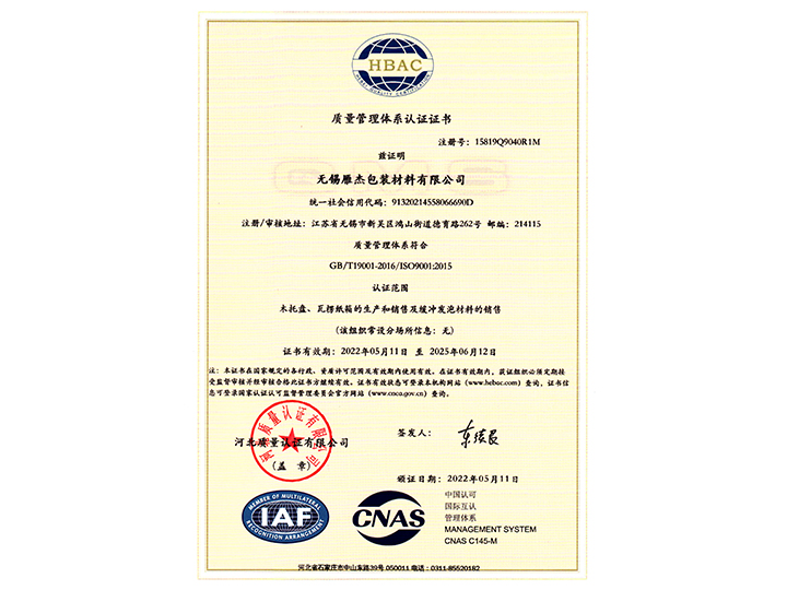 企業(yè)資質(zhì)鹽城市君雁包裝科技有限公司,始創(chuàng)于2021年,公司面積20000平方米。公司位于中國鹽城大豐區(qū)南陽鎮(zhèn)祥西村三組,是一家集研發(fā)、生產(chǎn)、銷售為一體的包裝材料企業(yè),產(chǎn)品涉及:外包裝紙箱,防水紙箱,涂蠟紙箱,浸蠟紙箱,冷柜紙箱,木包裝箱,免熏蒸木包裝箱,木托盤,EPE珍珠棉,珍珠棉袋,EVA板材,EVA大板,包裝海綿等包裝材料。包裝設(shè)計制造符合API、ANSI、ASTM、NACE、ISO、EN、BS、DIN、MSS SP等國際標(biāo)準(zhǔn)的要求,在鹽城以及周邊城市的市場上有良好的評價。公司擁有先進的生產(chǎn)設(shè)備,嚴(yán)格的管理制度和高素質(zhì)的人才團隊,保證了高質(zhì)量的產(chǎn)品和良好的服務(wù),同時我司還可以根據(jù)客戶特殊工況需求,提供全套包裝技術(shù)解決方案。